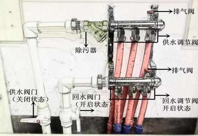 分户供热系统用户可先关闭除污器两端的阀门,或关闭入户供、回水阀门,用扳手拧开除污器堵帽,取出滤网,用毛刷清洗干净后装回原位,然后缓慢打开除污器两端阀门,或先打开回水阀门,再打开供水阀门,正常供热,也可请专业水暖工对室内供热设施进行冲洗。地热分水器排气方法:散热器(暖气片)排气方法:原标题:《供热排气方法,请查收!》